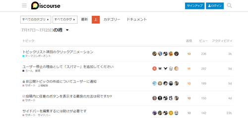 Discourseは、ユーザーがトピックを作成し、他のユーザーがそれに対して投稿することでディスカッションを進行します。これらのトピックは一定の閲覧数や返信数に達すると「人気トピック」になり、他のユーザーに推奨されます。このように、オンラインコミュニティ内の情報を効率的に管理する機能を提供しています。