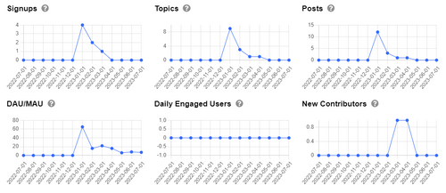 Discourseの分析とレポートは、新規登録ユーザー数、投稿数、閲覧数、いいね数、フラグ数など、オンラインコミュニティの活動に関するさまざまなメトリクスを提供します。これにより、時間経過によるトレンドを視覚化し、最も活発なトピックやカテゴリ、最も貢献度の高いユーザーを特定することができます。